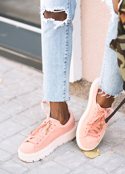 Featuring contrasting button fastening in the front and bow appliqués on the sides.