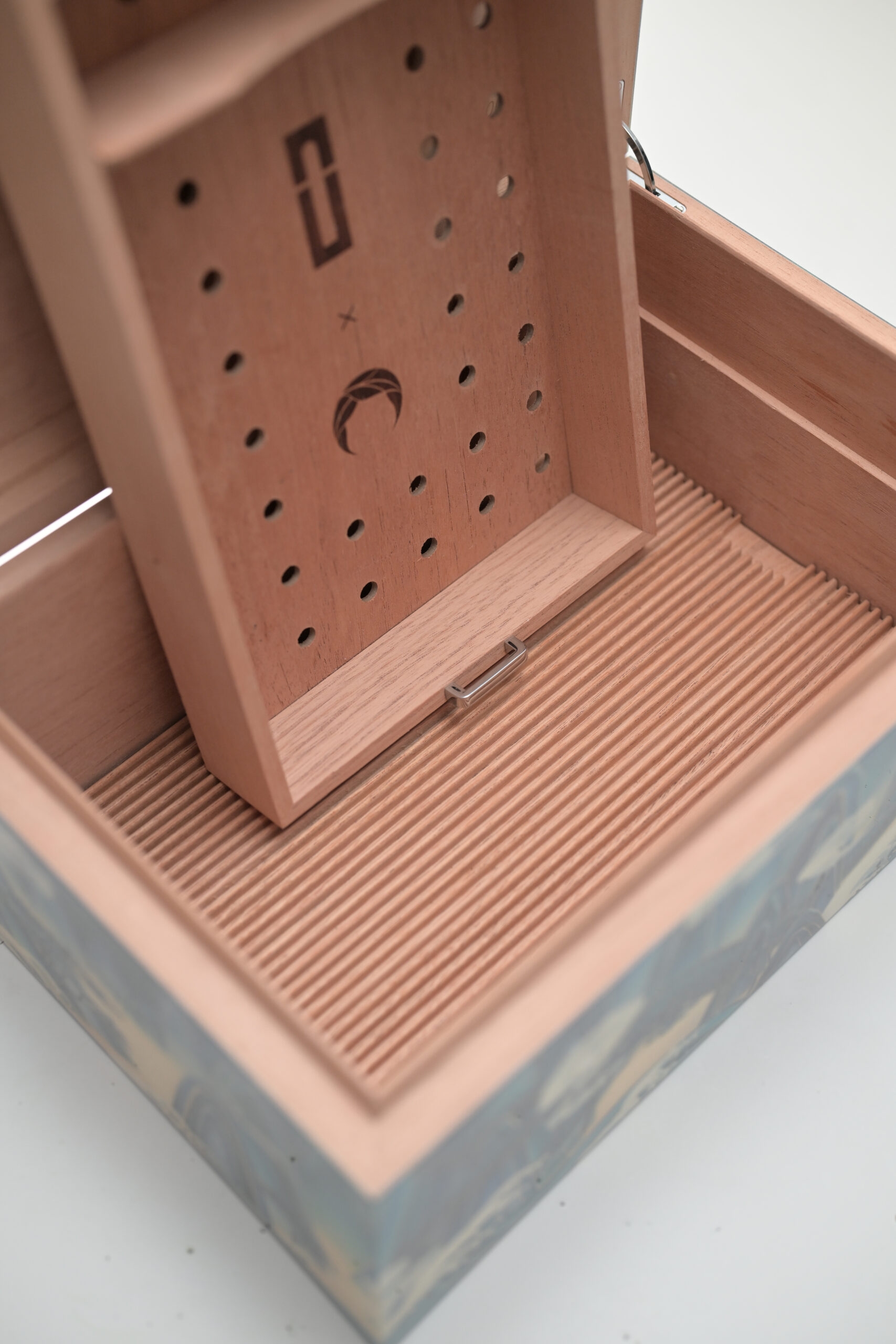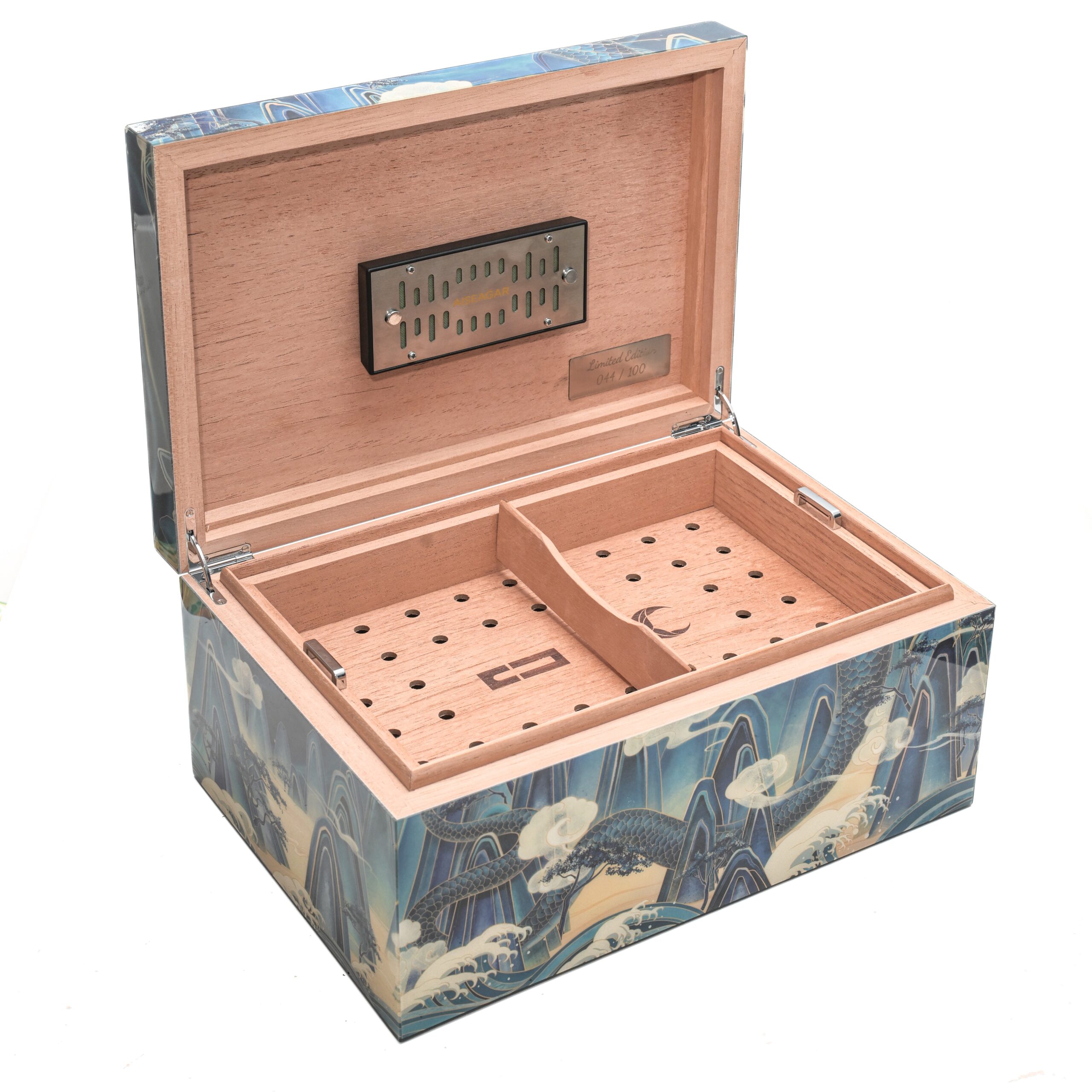 This limited-edition humidor draws its inspiration from the ancient Chinese myth of “Nuwa Mending the Heavens.” Adorned with the legendary scene of Nuwa melting stones to repair the sky, its design is not only a tribute to Chinese heritage but also symbolizes protection and restoration. Combining this exquisite artwork with a brilliant piano lacquer finish and precise humidity control, this portable 75-counts case perfectly preserves your collection. It’s the ideal companion for sharing fine cigars, culture, and legend with fellow connoisseurs.